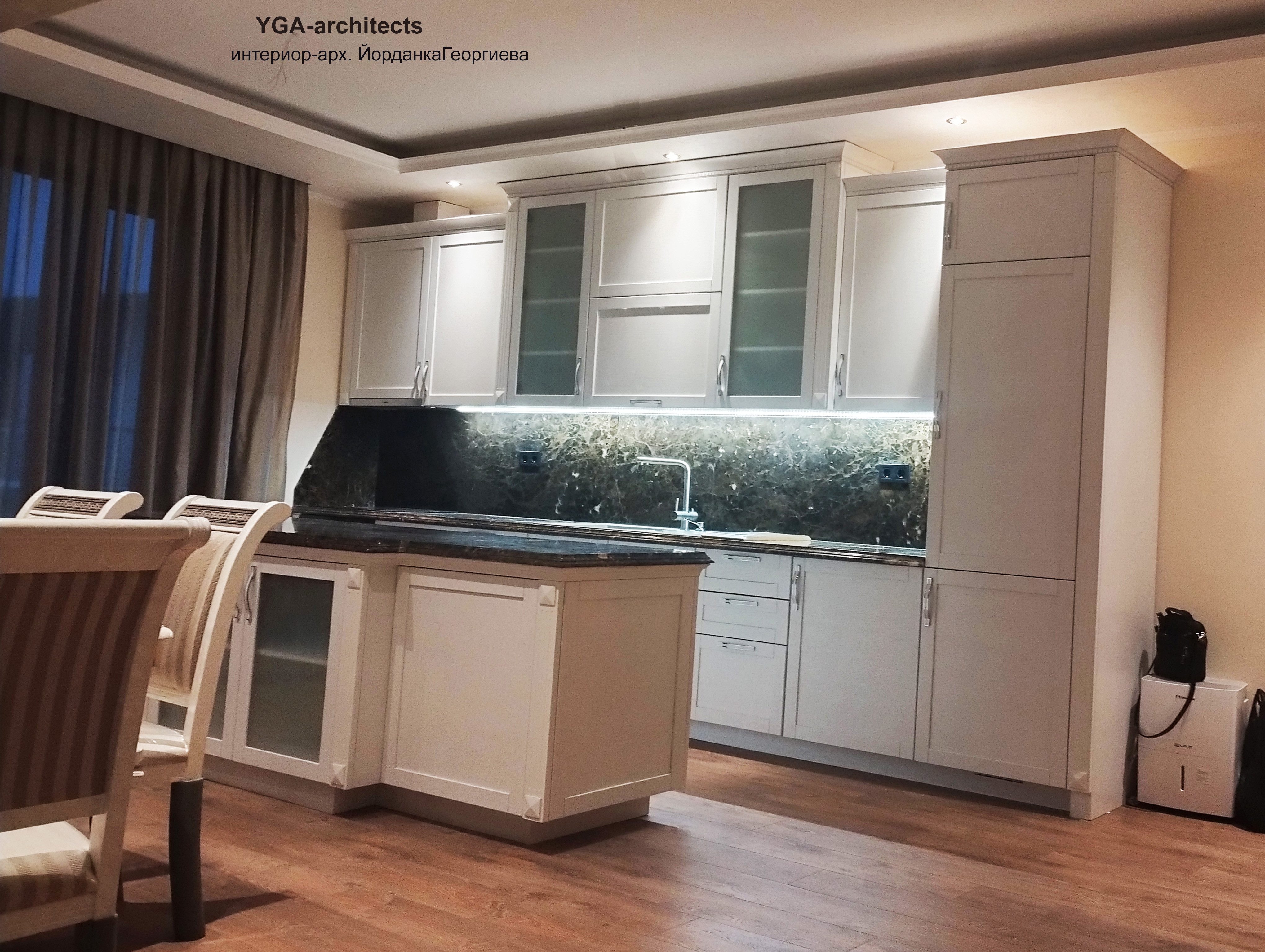 Ултрамодерен интериорен дизайн през призмата на класиката. Проект и реализация, проектиране и реализация на мебелите. Цялостно интериорно озпълнение