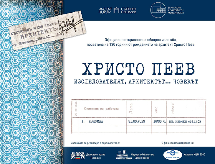 📌 31 март, 18:00 часа, на пл. „Римски стадион“ – откриване на обзорната изложба „Христо Пеев: изследователят, архитектът, човекът“