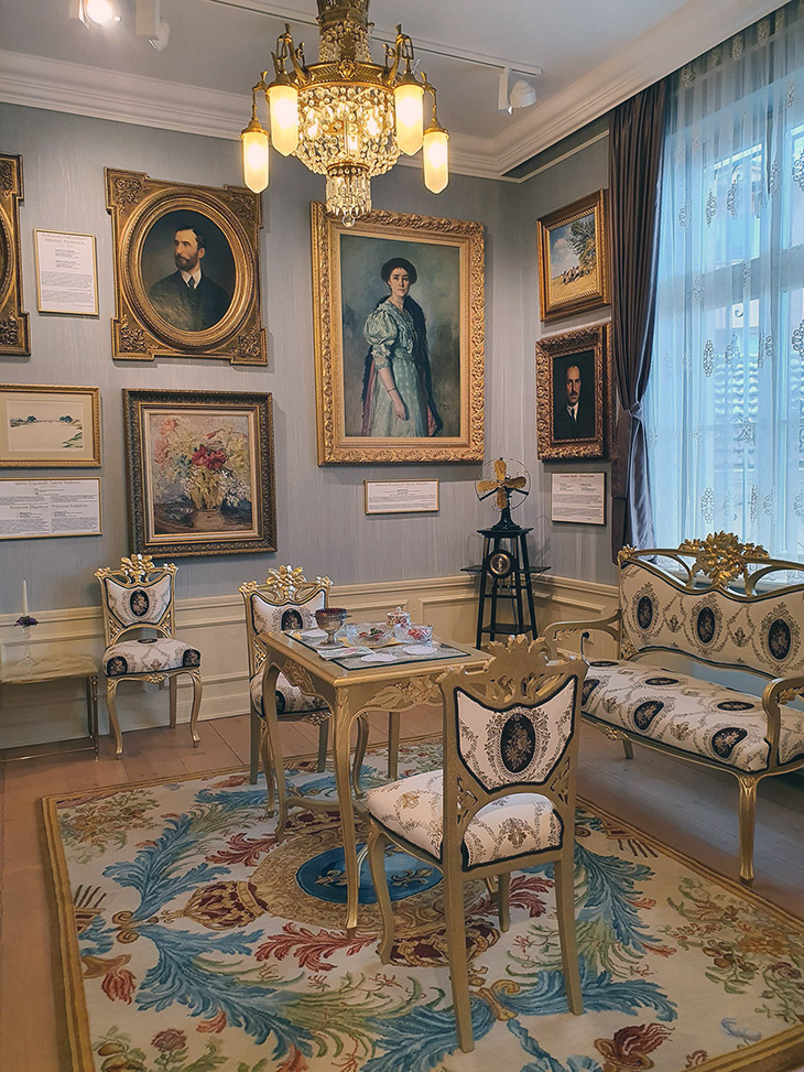 Сутеренът с първия и втория етаж са преустроени в художествена галерия, където е поместена богата колекция от български автори, творили от края на 19 век до наши дни. Оригиналните пруски сводове в сутерена са почистени и изявени. Дограмата е подменена с дървена, изработена по модел от съществуващата, възстановени са дърворезбованите декорации от външната й страна. Всички интериорни решения са подчинени от съществуващите детайли (врати, решетки), а всички мебели и осветителни тела в интериора са автентични, реставрирани и носещи духа на времето.