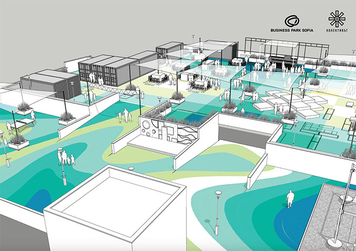 Бизнес парк София представи своята дългосрочна стратегия за развитие, която цели да превърне най-големия офис комплекс в Централна и Източна Европа в още по-притегателен градски център чрез повече зелени площи, публични пространства, събития, култура и разнообразни услуги. Сред първите подобрения, създадени в партньорство с фондация Колективът, са трансформацията на покрив с площ над 3 000 кв. м в социално място за събития, храна и срещи, нови споделени места за работа на открито, нова сцена край езерото и мащабни произведения на уличното изкуство.