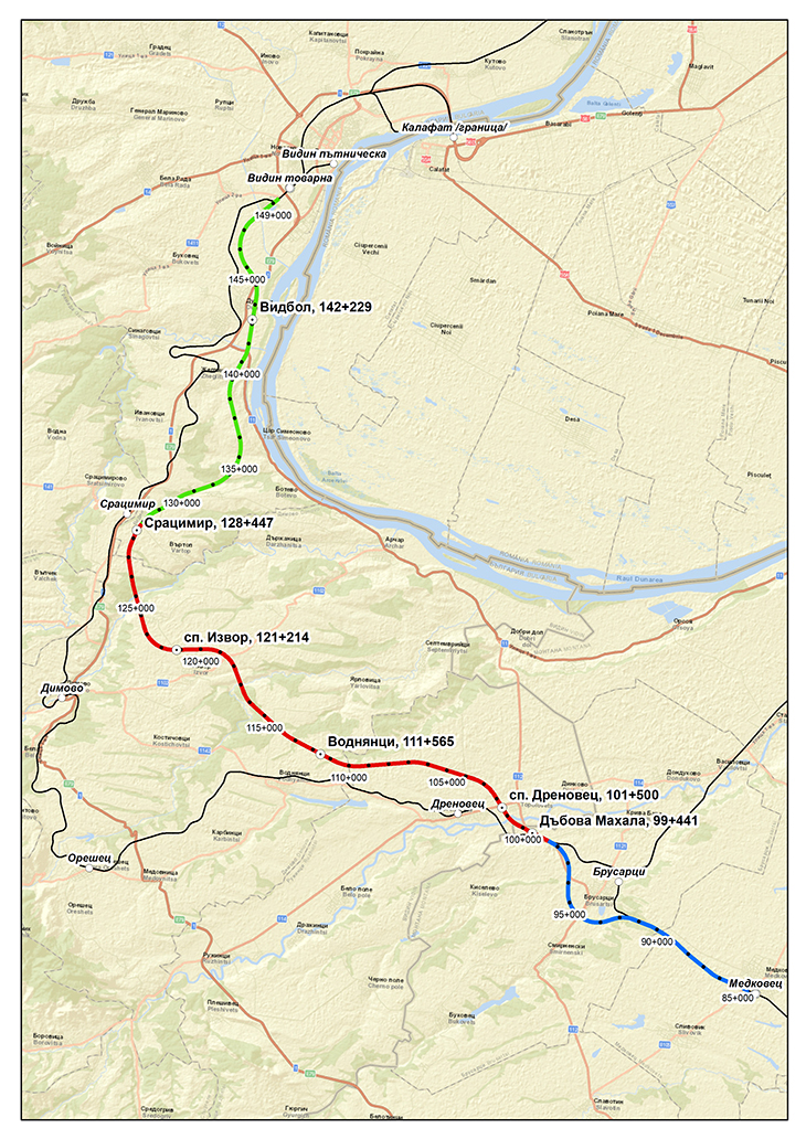 Участък Видин – Медковец е разделен за строителство на три участъка: Медковец – Дъбова махала, Дъбова махала – Срацимир и Срацимир – Видин. В рамките на този месец се очаква да бъдат обявени обществените поръчки за избор на изпълнители на строителството за две от тези отсечки, а именно: Медковец – Дъбова махала и Дъбова махала – Срацимир. За третата обявяването на обществената поръчка за избор на изпълнител на строителството се очаква до няколко месеца.