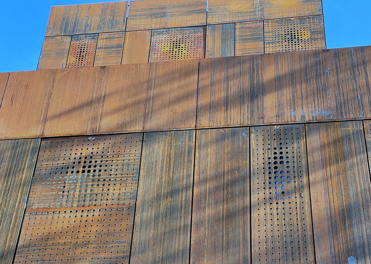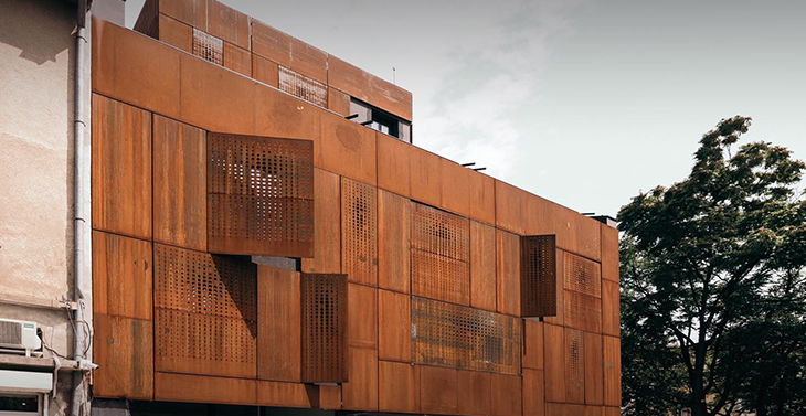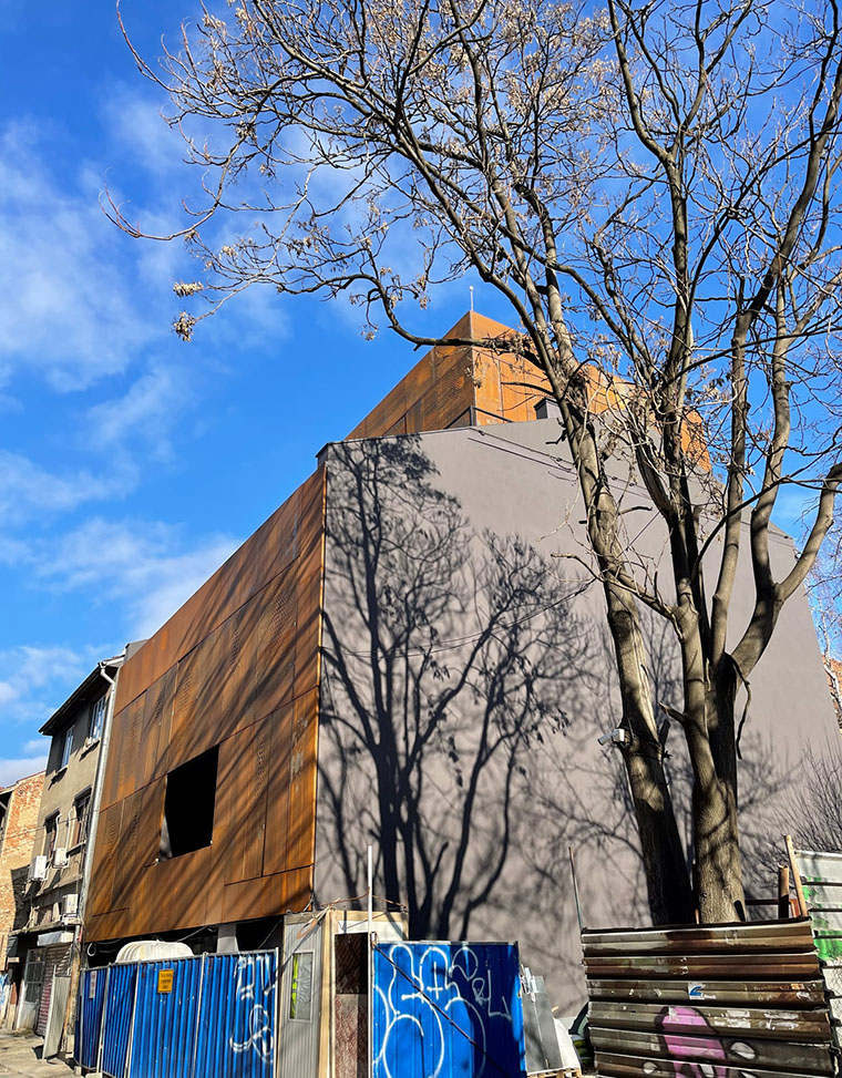 Сграда до Женския пазар в София с фасада от патинираща стомана